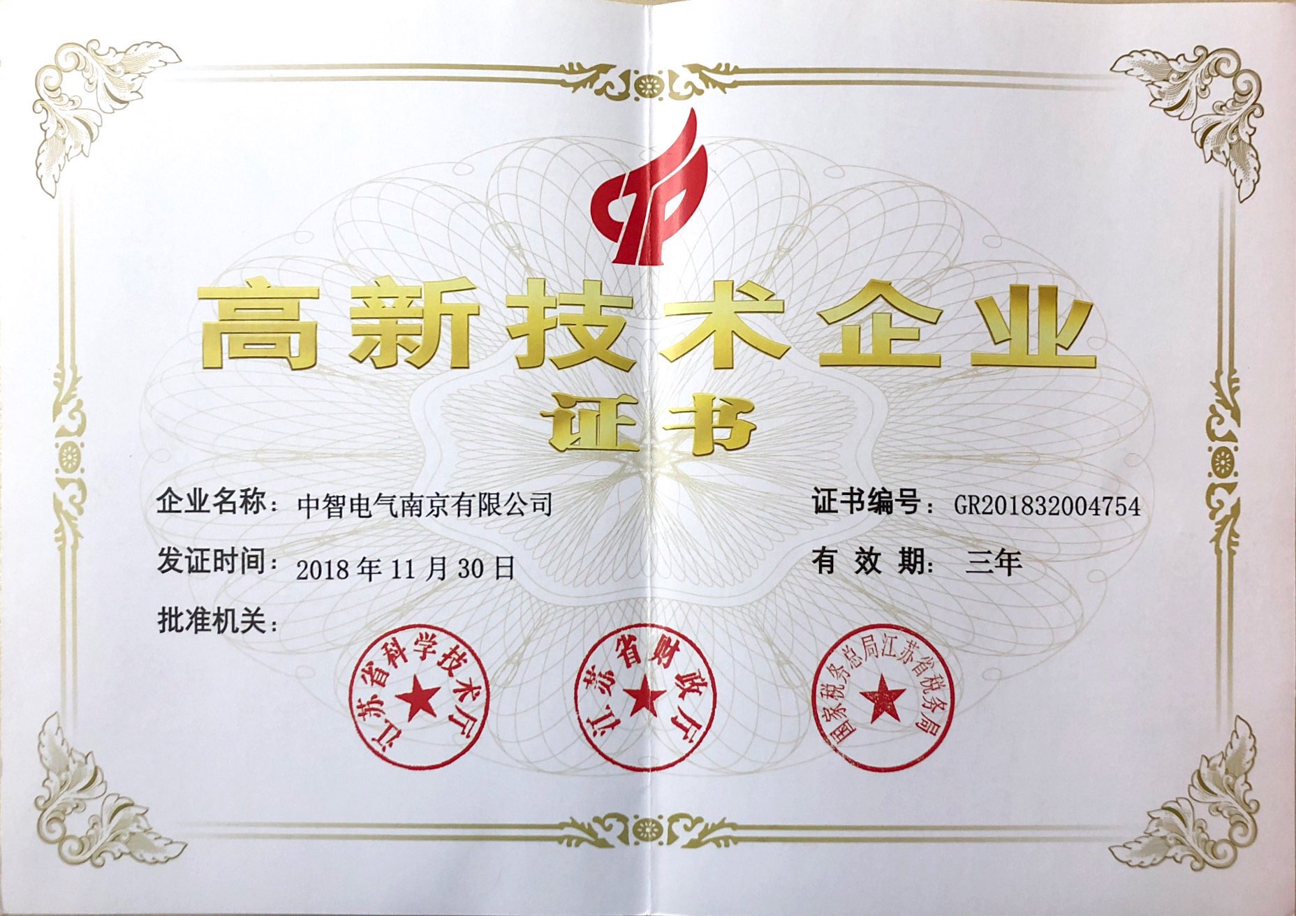 高新技術企業證書