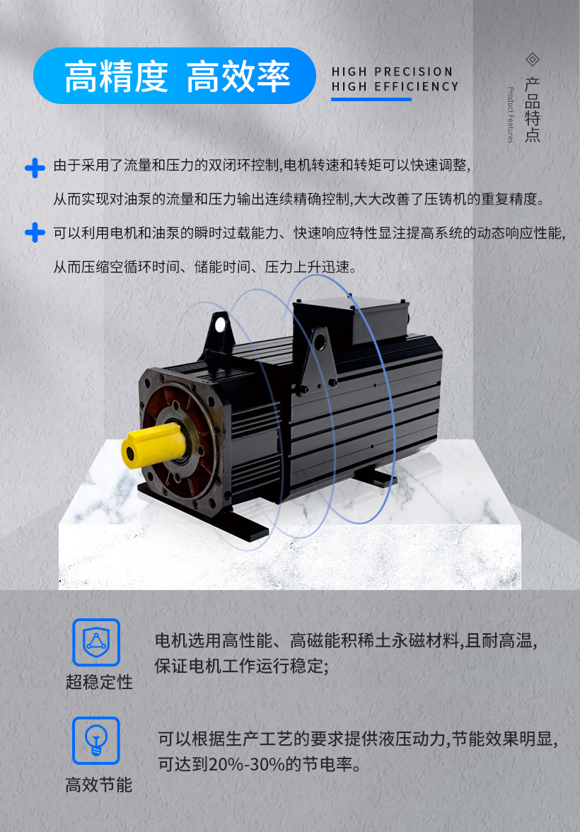 由于采用了流量和壓力的雙閉環控制,電機轉速和轉矩可以快速調整從而實現對油泵的流量和壓力輸出連續精確控制,大大改善了壓鑄機的重復精度。